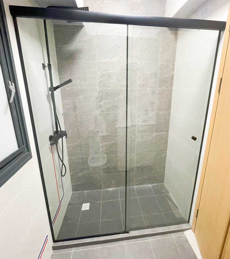 1 Fixed 1 Sliding Shower Screen (Black Frame)